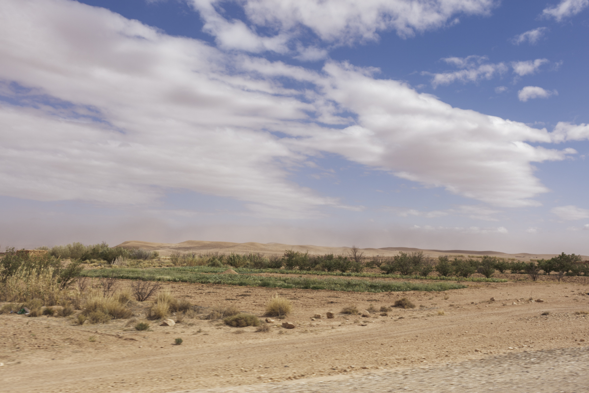La conduite de Mohammed le docteur était calme, mais la route souvent mauvaise. Un premier arrêt me permit de souffler, le vent violent nous bousculait. Mohammed le géologue nous montra l’effet érosif qu’il avait sur les rochers. J’avais du mal à écouter. Le sable, au loin, formait un nuage magnifique. Rapidement, la route commença à monter, les longues lignes droites firent place à des virages qui n’arrangèrent pas ma situation. Mohammed le docteur s’en inquiéta : « Comment vas-tu ? ». Ma réponse ne le rassura pas. Vider mon estomac sur le bord de la route quelques minutes plus tard me permit de reprendre des couleurs et un peu de forces.