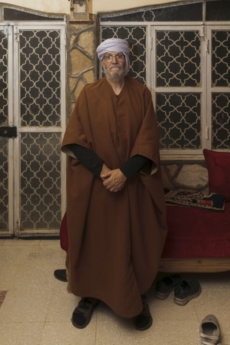 Abdallah et Thameur m’attrapèrent gentiment et me mirent un magnifique turban ! rire collectif, le mien compris : ce n’est malheureusement pas le turban qui permet de parler arabe. La kachabia que je mis ensuite acheva de me faire entrer, au moins pour un temps, dans la communauté. Je ne jouais pas à l’arabe, aucune moquerie, juste le plaisir d’être ensemble. Je pris de nombreuses photographies, ma galerie de portraits s’enrichissait.