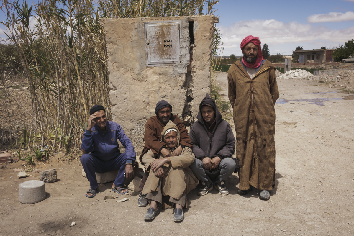Beaucoup d’hommes sont assis sur le trottoir, inactifs, à l’ombre, protégés du froid encore présent et du vent par leur kachabia, inactifs. Souvent ils me saluent par un « Salaam » plus ou moins sonore, auquel je réponds maintenant en arabe, l’un des seuls mots que j’arrive à prononcer. Les femmes ne me regardent pas en me croisant, elles ne me saluent pas. L’un deux me propose de le prendre en photographie, son compagnon se lève et s’éloigne. Des enfants, souvent, me suivent, curieux de voir cet étrange étranger avec son pantalon à poches, pratique pour le matériel, et sa drôle de casquette qui n’est pas d’ici.