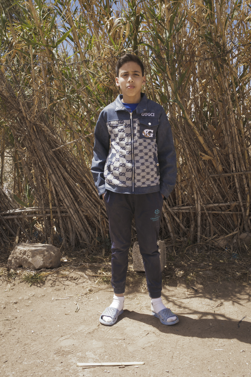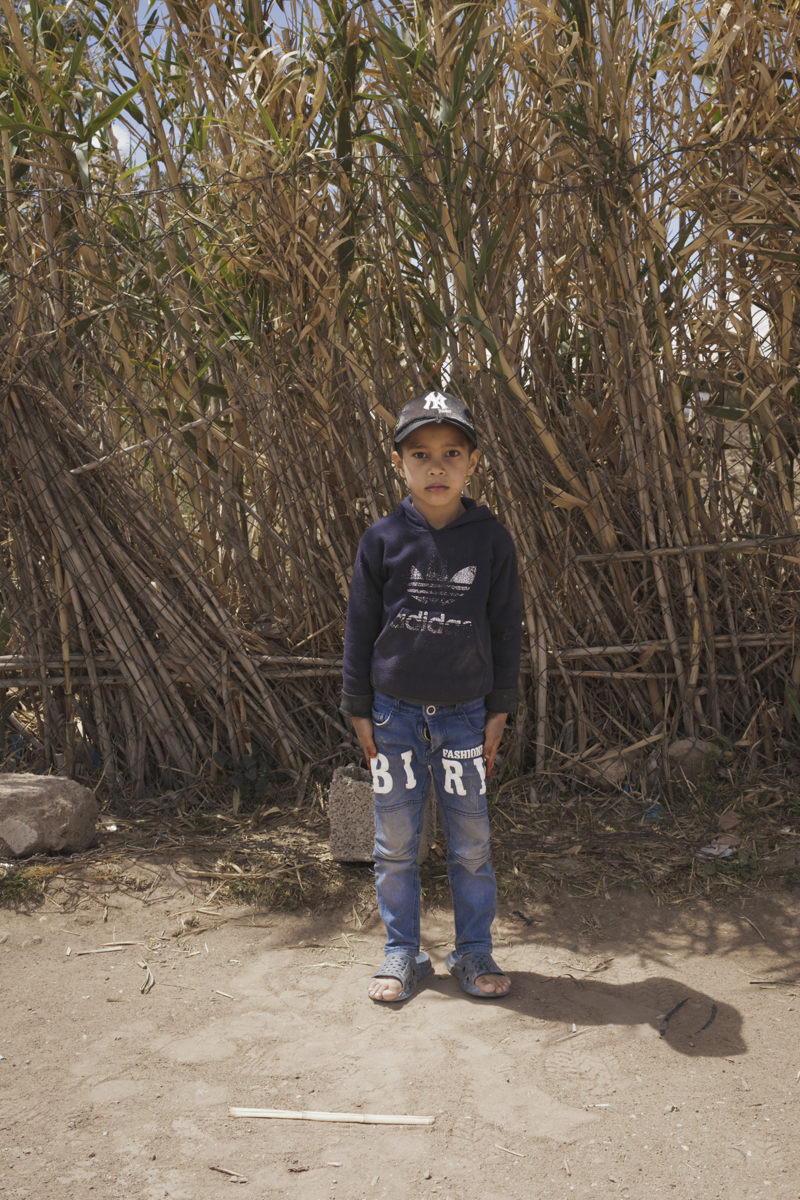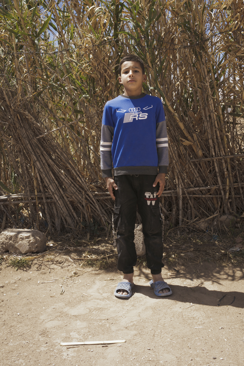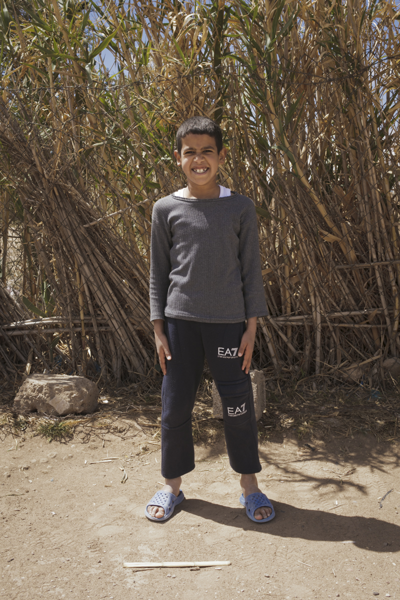 Une horde d’enfants me suivait lors de mon retour, des garçons qui restaient soigneusement à distance. Souvent les hommes enturbannés leur criaient des mots pour qu’ils s’éloignent et me laissent tranquille. Un groupe d’hommes était assis, toujours assis, à l’ombre d’un mur, attendant je ne sais quoi. Peut-être simplement le repas de midi. Ils me proposèrent de les prendre en photographie, ce que j’acceptais volontiers. Les enfants s’approchèrent, se firent pressants, gentiment. Ce fut leur moment ! Comment mettre un peu d’ordre ! Salgado donne la méthode : les mettre en ligne, et les faire passer un à un ! Pas besoin de parler la langue, juste des sourires et des gestes. Les hommes comprenant la scène sont venus m’aider avec de grands éclats de rire. Je leur parlais français, ils me répondaient en arabe, c’était drôle : dix enfants joyeux et heureux de poser devant moi. Une photographie collective ensuite, avant de m’apercevoir qu’Abdallah, passant en voiture, avait vu la scène, et me photographiait photographiant ! Il était rayonnant, je crois que tous appréciaient ma disponibilité envers chacun. Quelques centaines de mètres plus loin, le berger accepta également la photographie.
